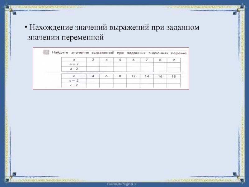 Слайд 3 Нахождение значений выражений при заданном значении переменной