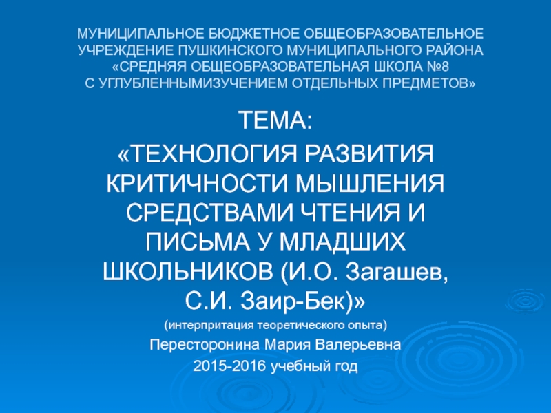 Слайд 1МУНИЦИПАЛЬНОЕ БЮДЖЕТНОЕ ОБЩЕОБРАЗОВАТЕЛЬНОЕ УЧРЕЖДЕНИЕ ПУШКИНСКОГО МУНИЦИПАЛЬНОГО РАЙОНА