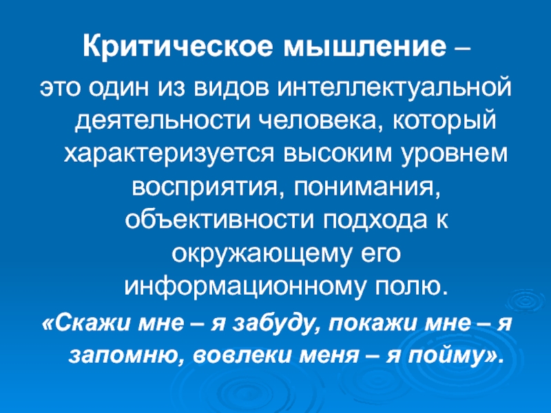 «Скажи мне – я забуду, покажи мне – я запомню, вовлеки меня – я пойму».