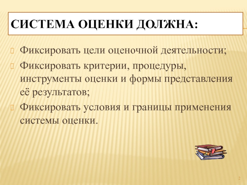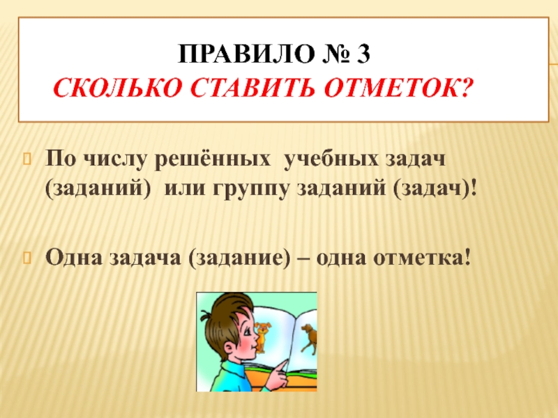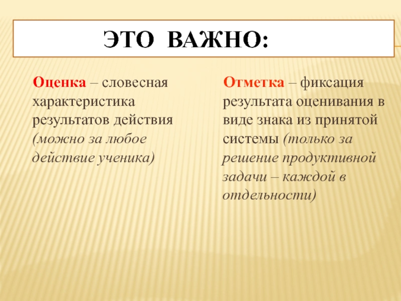 Отметка – фиксация результата оценивания в виде знака из принятой системы (только за решение продуктивной задачи – каждой в отдельности)