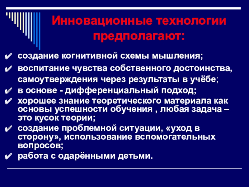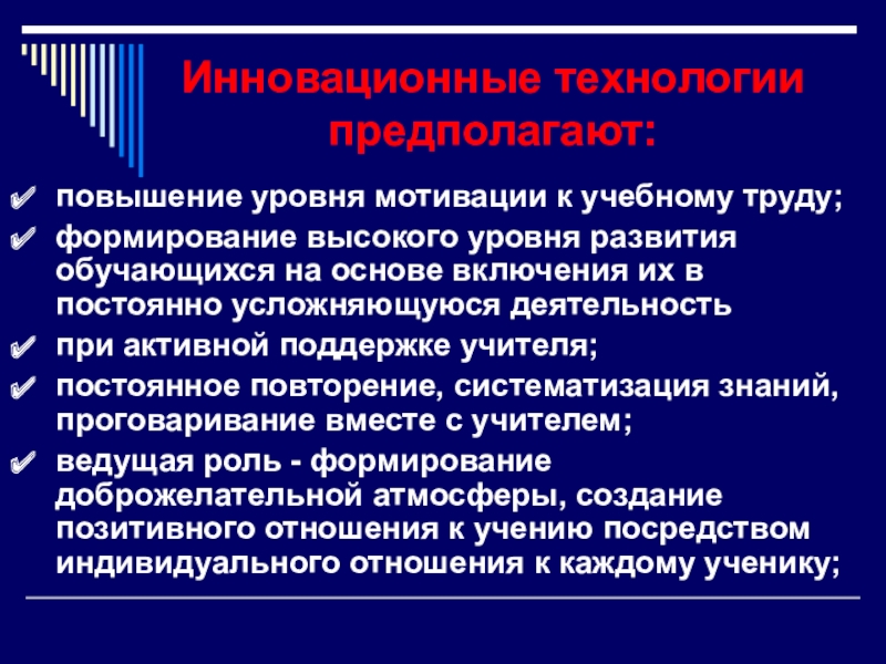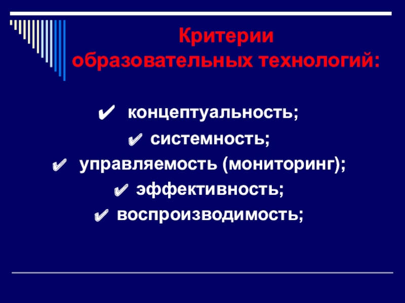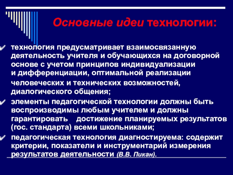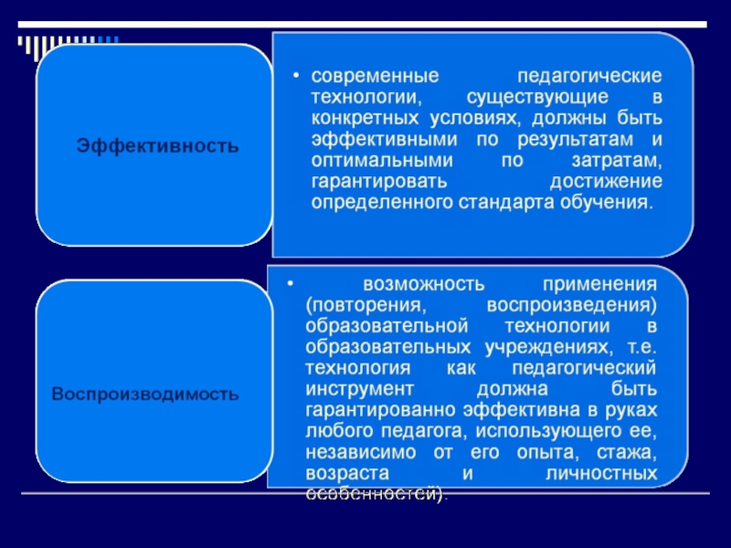 элементы педагогической технологии должны быть воспроизводимы любым учителем и должны гарантировать достижение планируемых результатов (гос. стандарта) всеми школьниками;