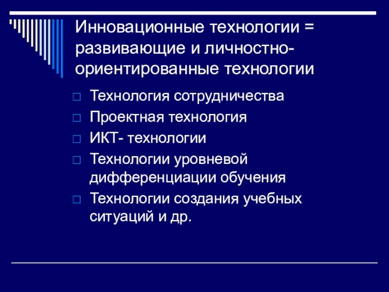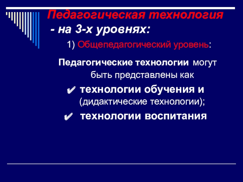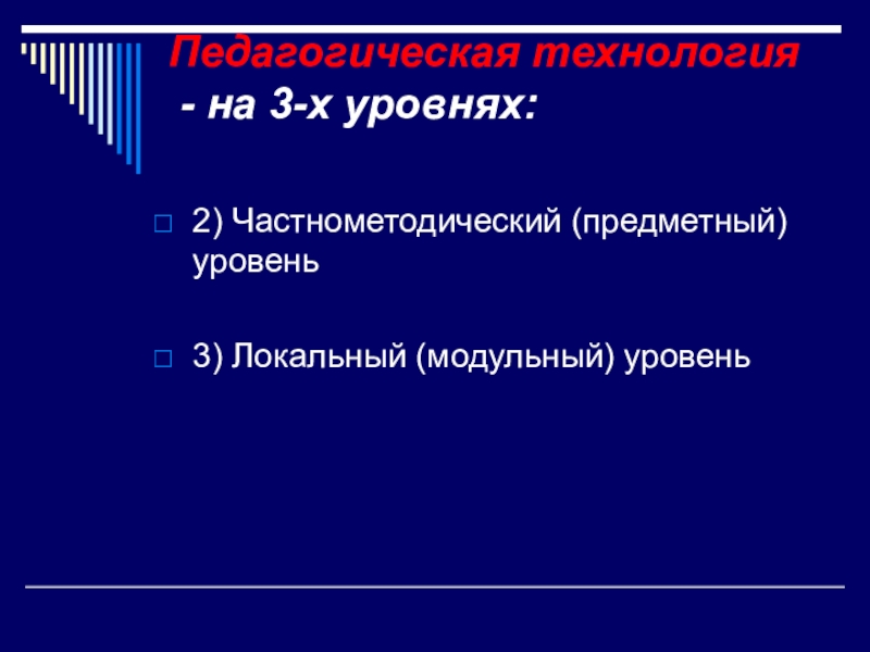 лежит определенная методологическая, философская позиция автора. Так можно различать технологию процесса передачи знаний и технологию развития личности;