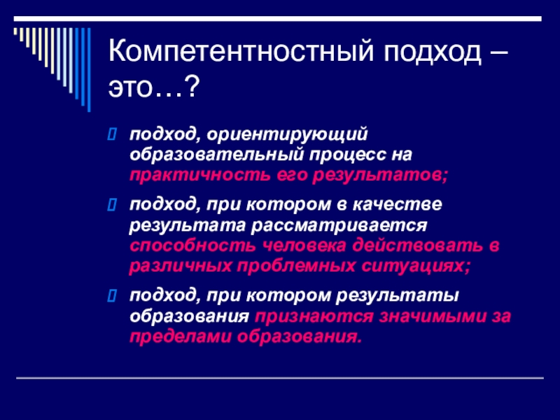 Слайд 7«… это подход, акцентирующий внимание на результате образования, причем в качестве