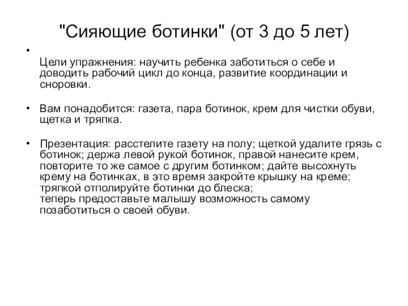 Слайд 23"Сияющие ботинки" (от 3 до 5 лет)