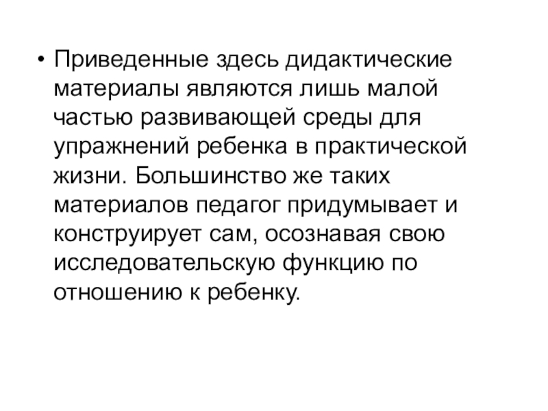 Слайд 92Приведенные здесь дидактические материалы являются лишь малой частью развивающей среды для
