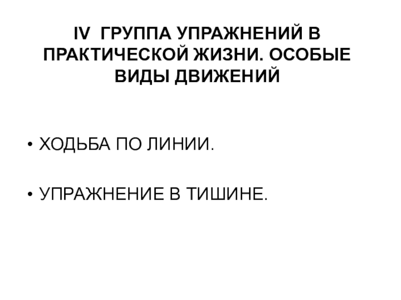 Слайд 94IV ГРУППА УПРАЖНЕНИЙ В ПРАКТИЧЕСКОЙ ЖИЗНИ. ОСОБЫЕ ВИДЫ ДВИЖЕНИЙ