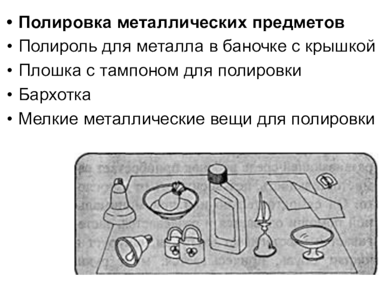 Слайд 38Полировка металлических предметов