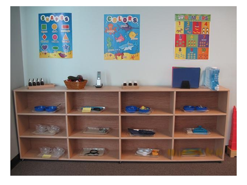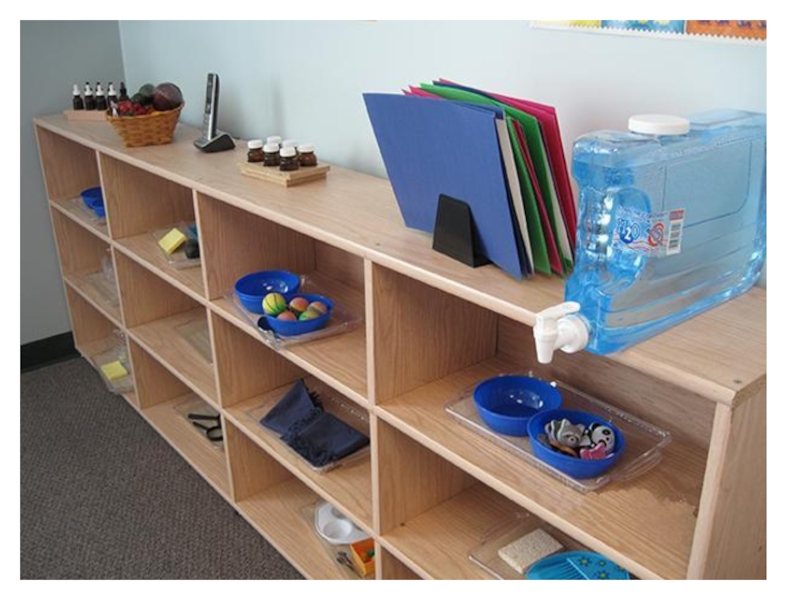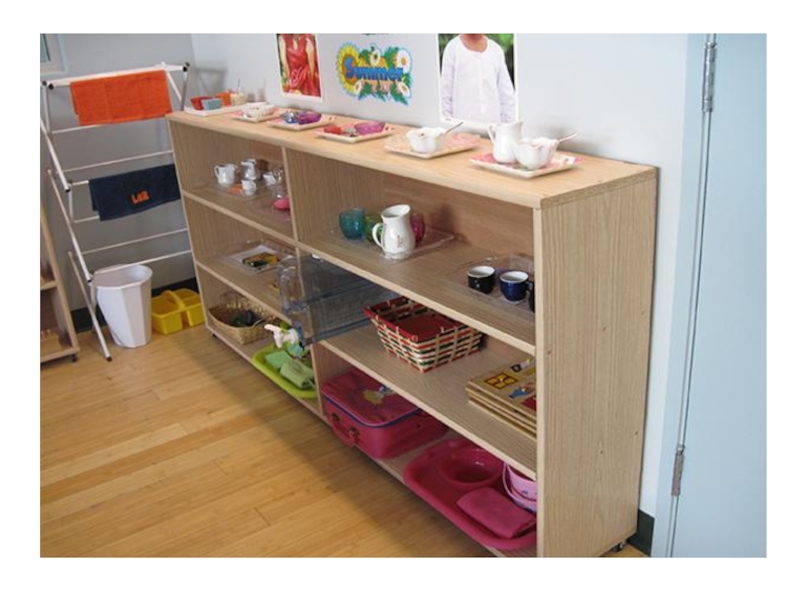 Здесь расположены материалы, с помощью которых ребёнок учится следить за собой