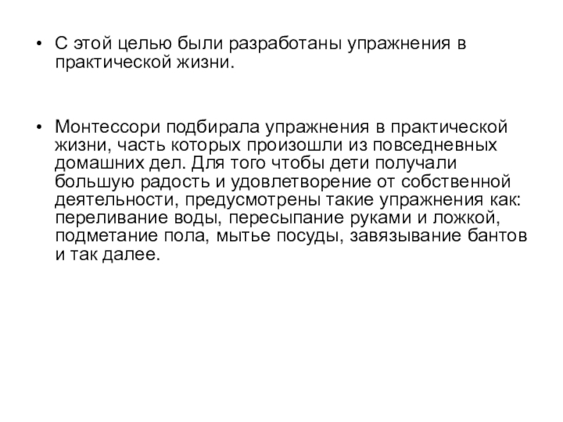 Слайд 4С этой целью были разработаны упражнения в практической жизни.