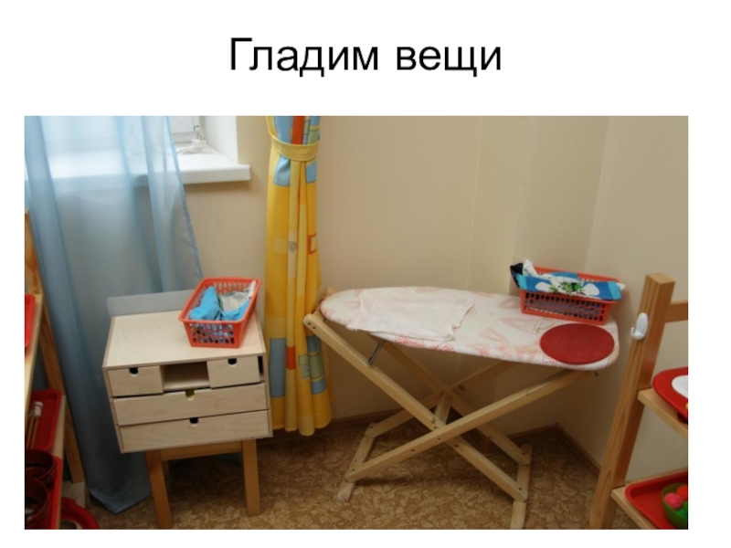 Слайд 37 Гладить вещи малышей учат от 3-х лет
