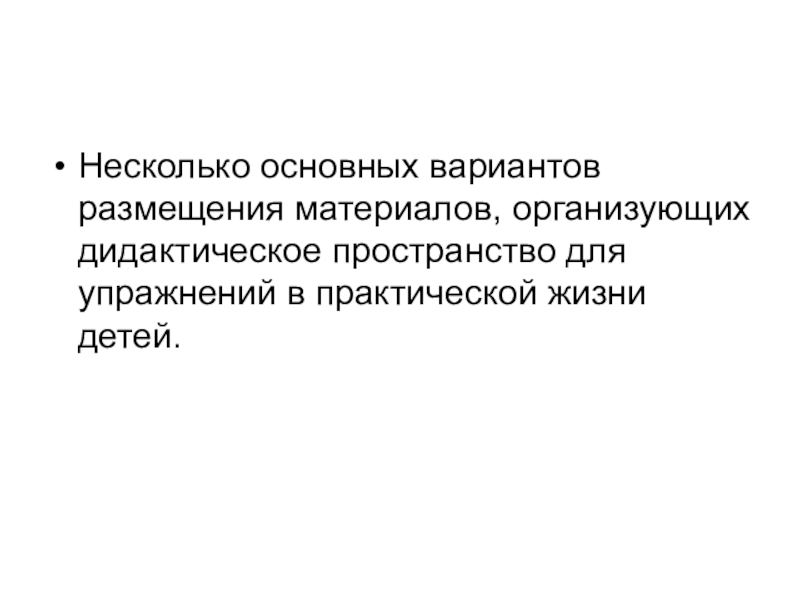 Слайд 49Несколько основных вариантов размещения материалов, организующих дидактическое пространство для упражнений в