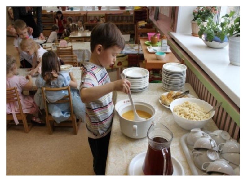 Материал для мытья рук и чистки ногтей, материалы позволяющие освоить первые навыки в приготовлении пищи — чистка и резание овощей и фруктов, сервировка стола.