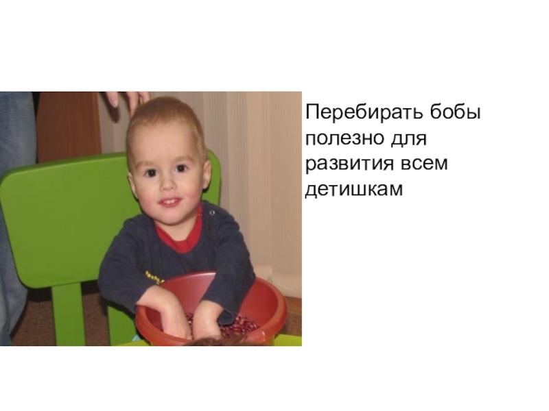 Слайд 65Перебирать бобы полезно для развития всем детишкам