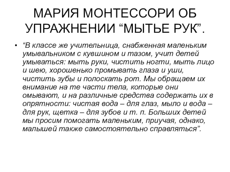 МАРИЯ МОНТЕССОРИ ОБ УПРАЖНЕНИИ “МЫТЬЕ РУК”.