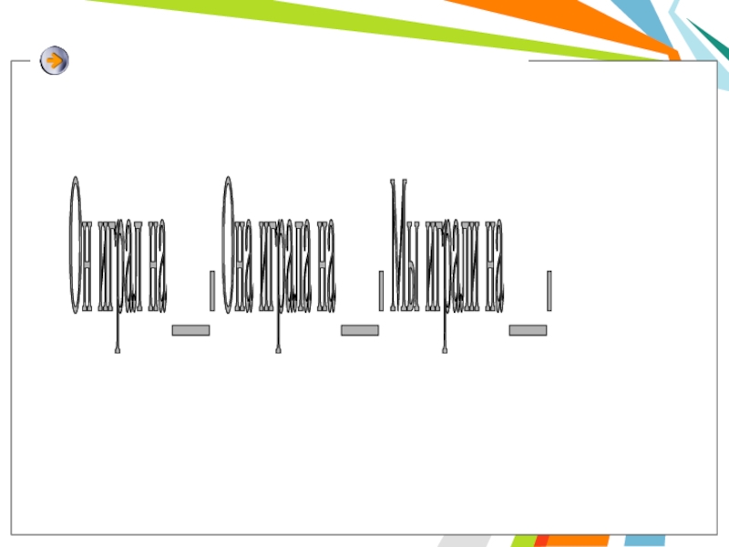 Он играл на ____. Она играла на ____. Мы играли на ____.