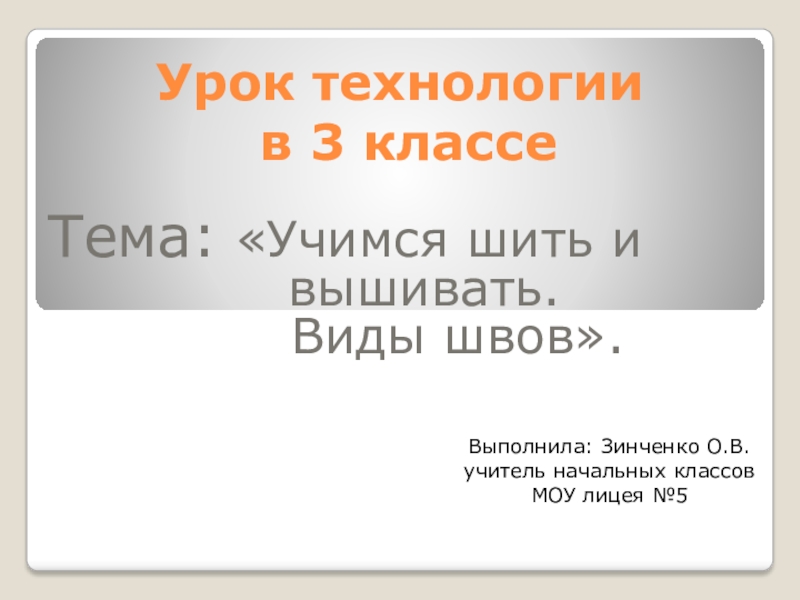 Выполнила: Зинченко О.В. учитель начальных классов МОУ лицея №5