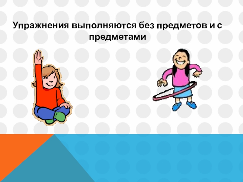 Слайд 14Упражнения выполняются без предметов и с предметами