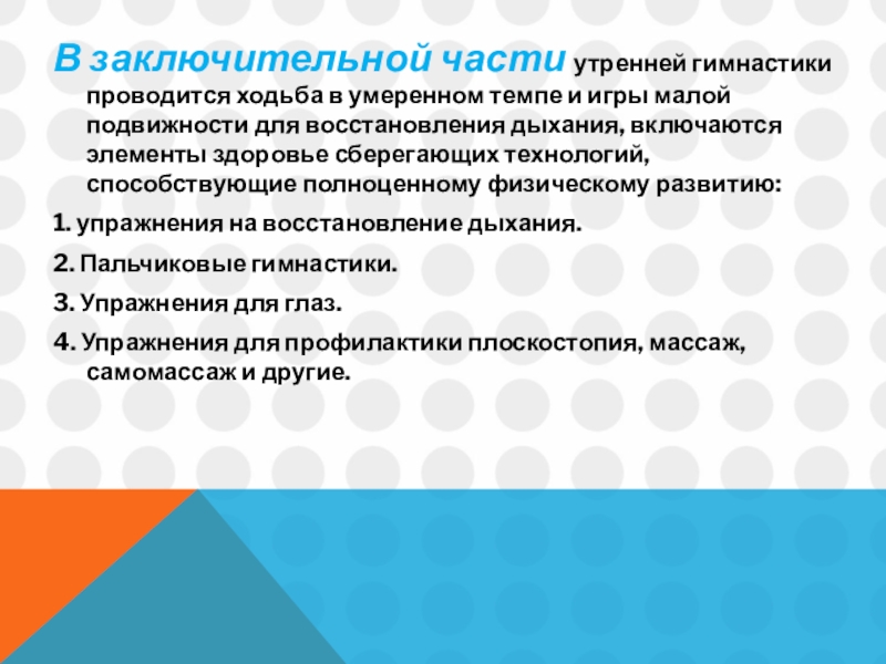 Слайд 12В заключительной части утренней гимнастики проводится ходьба в умеренном темпе и