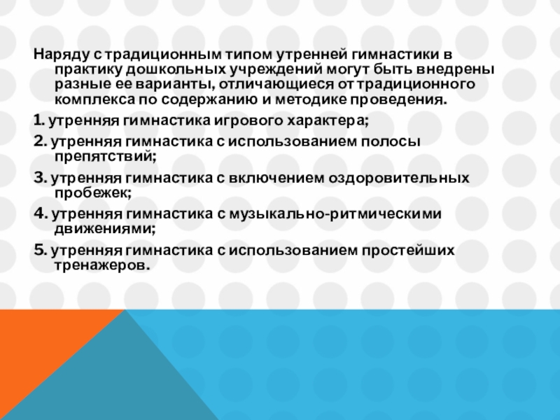 Наряду с традиционным типом утренней гимнастики в практику дошкольных учреждений могут