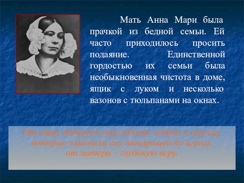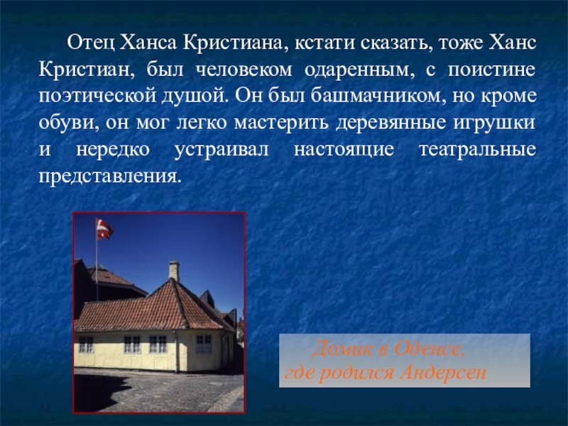 От отца Андерсен унаследовал любовь к книгам, которые заменили ему товарищей по играм;