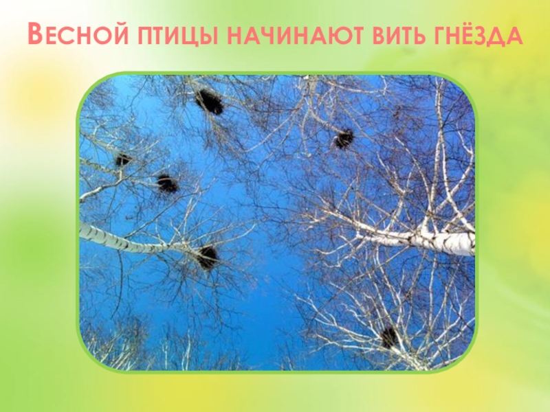 ВЕСНОЙ ПТИЦЫ НАЧИНАЮТ ВИТЬ ГНЁЗДА