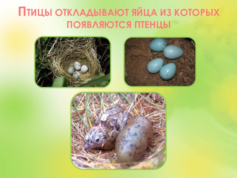 Слайд 14ПТИЦЫ ОТКЛАДЫВАЮТ ЯЙЦА ИЗ КОТОРЫХ ПОЯВЛЯЮТСЯ ПТЕНЦЫ