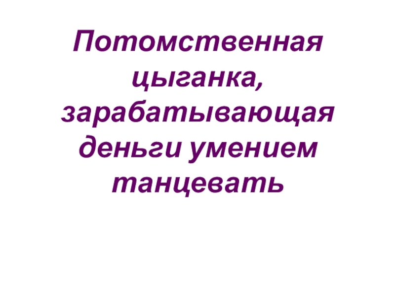 Слайд 13Потомственная цыганка, зарабатывающая деньги умением танцевать
