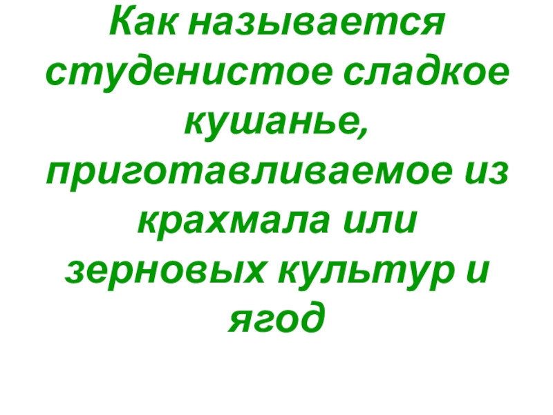Слайд 24Как называется студенистое сладкое кушанье, приготавливаемое из крахмала или зерновых культур