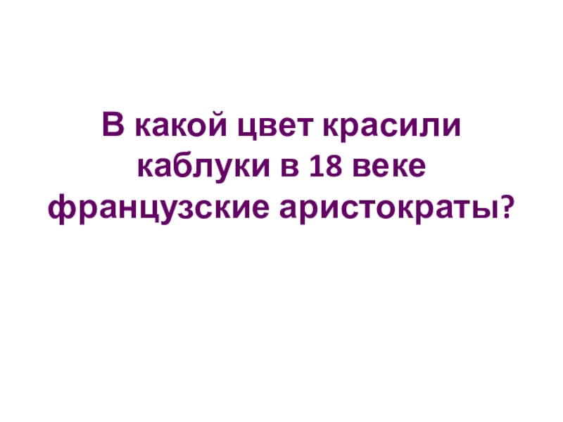 Слайд 29В какой цвет красили каблуки в 18 веке французские аристократы?