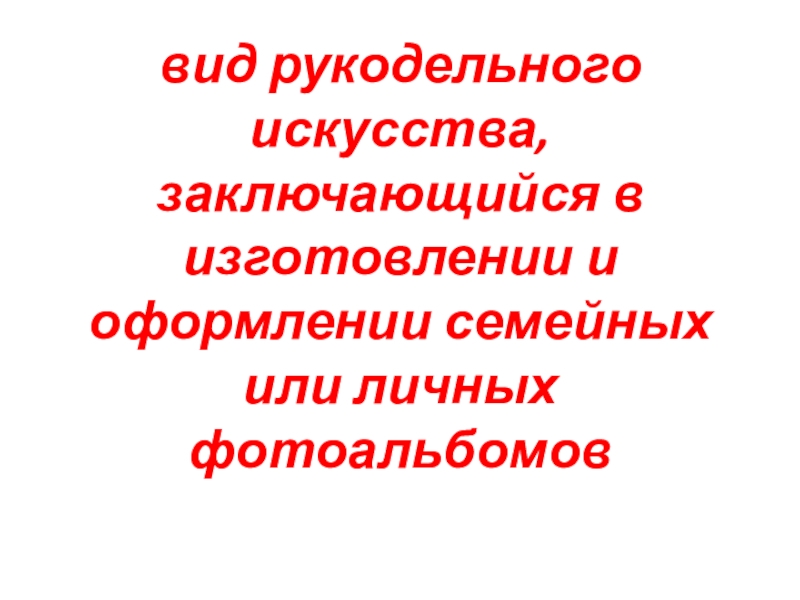 Слайд 31вид рукодельного искусства, заключающийся в изготовлении и оформлении семейных или личных