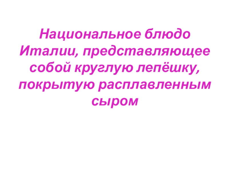 Национальное блюдо Италии, представляющее собой круглую лепёшку, покрытую расплавленным сыром