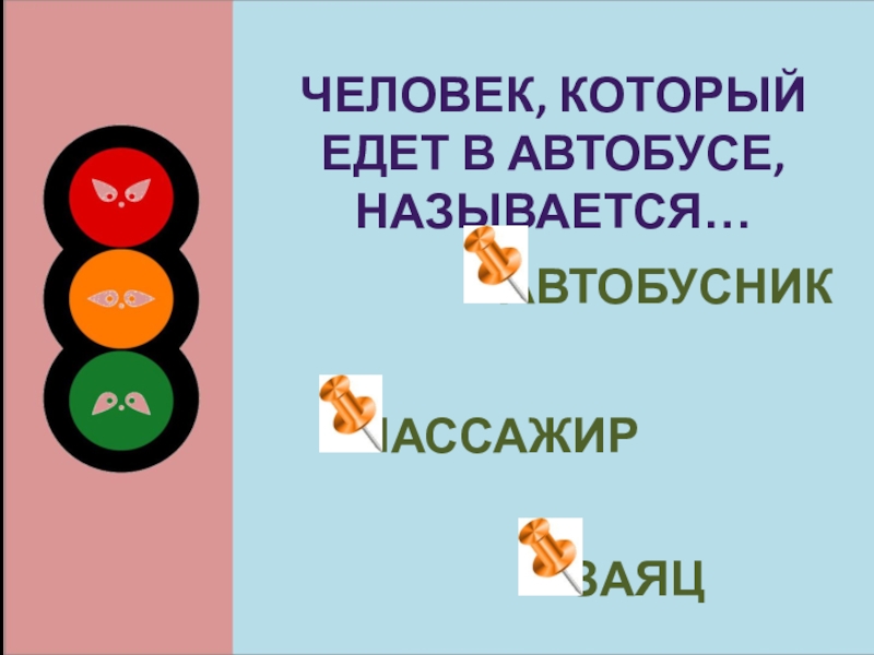 Слайд 15Человек, который едет в автобусе, называется…