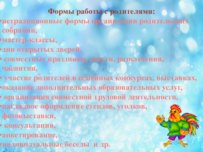Слайд 5Формы работы с родителями:
