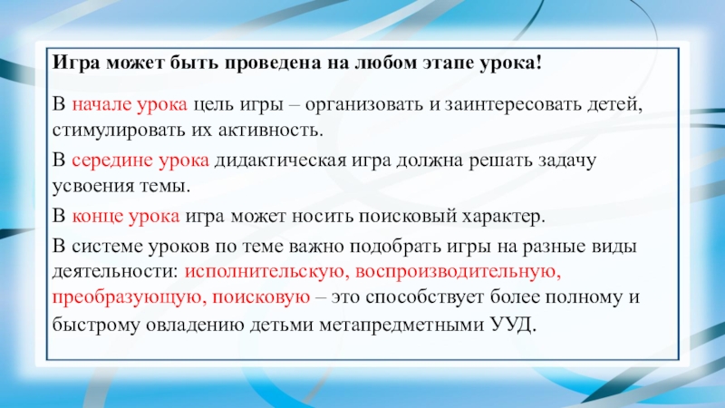 Слайд 16Игра может быть проведена на любом этапе урока!