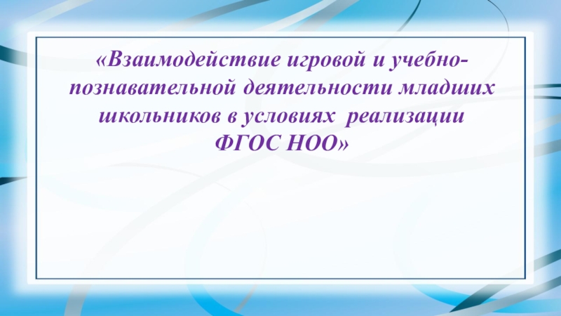 Слайд 1«Взаимодействие игровой и учебно-познавательной деятельности младших школьников в условиях реализации