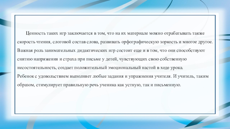 Слайд 25Ценность таких игр заключается в том, что на их материале можно