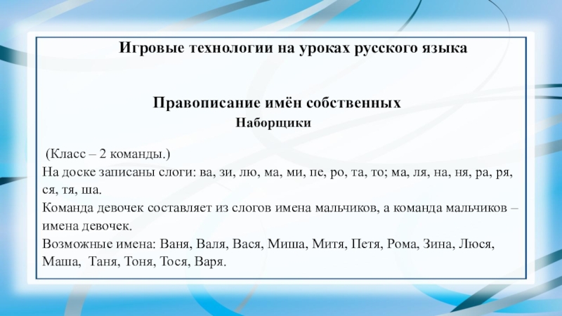 Слайд 19 Игровые технологии на уроках русского языка