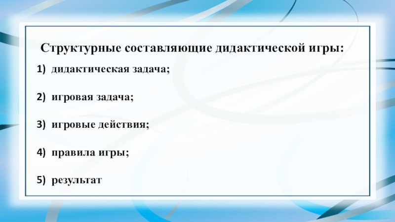 Слайд 13Структурные составляющие дидактической игры: