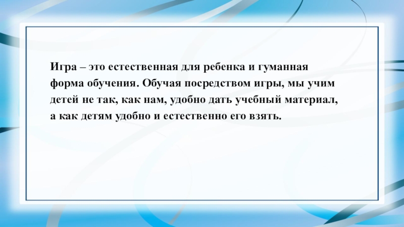 Слайд 3Игра – это естественная для ребенка и гуманная форма обучения. Обучая