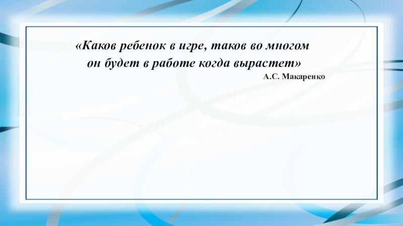 Слайд 30«Каков ребенок в игре, таков во многом