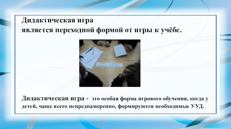 Дидактическая игра - это особая форма игрового обучения, когда у детей, чаще всего непреднамеренно, формируются необходимые УУД.