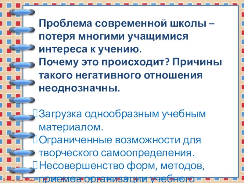 Слайд 3Проблема современной школы – потеря многими учащимися интереса к учению.