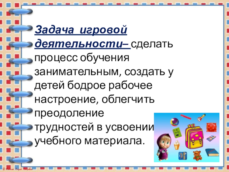 Слайд 5Задача игровой деятельности– сделать процесс обучения