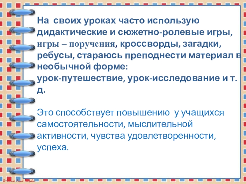 Это способствует повышению у учащихся самостоятельности, мыслительной активности, чувства удовлетворенности, успеха.
