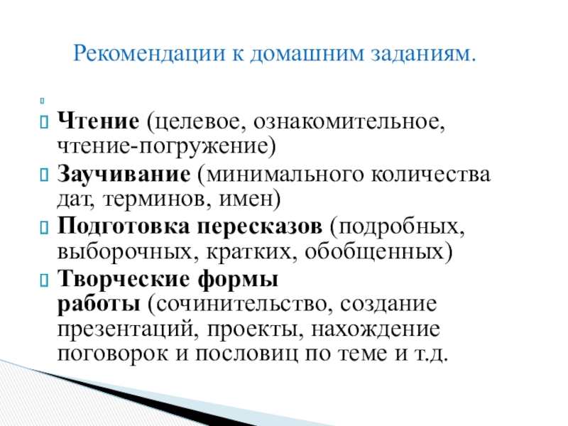 Рекомендации к домашним заданиям.