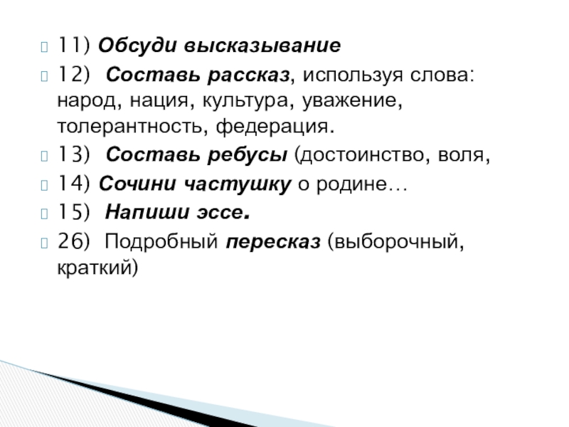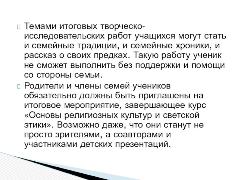 Виды домашних заданий по курсу «Основы религиозных культур и светской этики»: