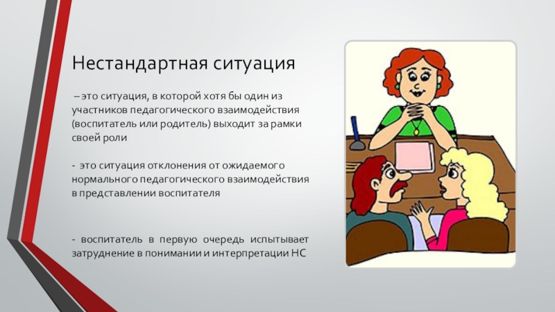- воспитатель в первую очередь испытывает затруднение в понимании и интерпретации НС