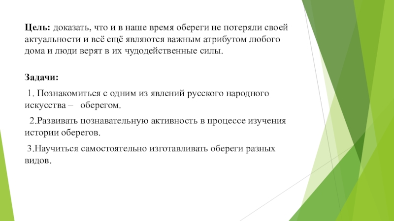 3.Научиться самостоятельно изготавливать обереги разных видов.