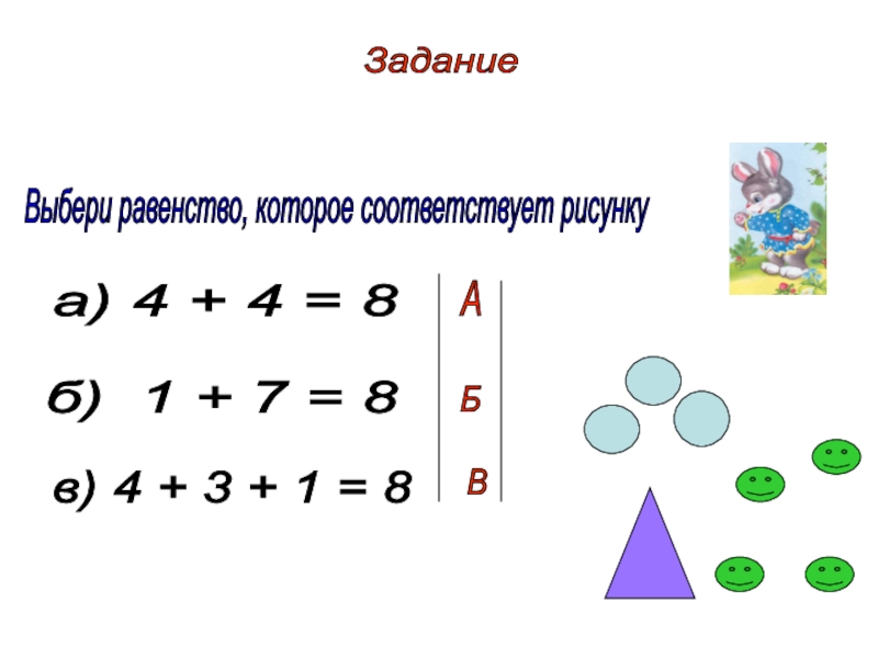 б) 1 + 7 = 8