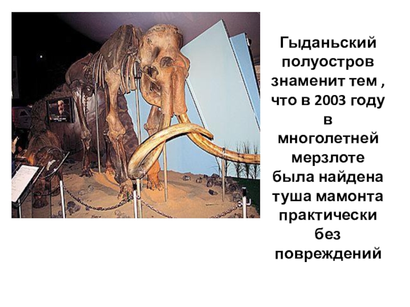 Гыданьский полуостров знаменит тем , что в 2003 году в многолетней мерзлоте была найдена туша мамонта практически
